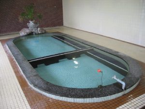 砂石(さざらし)福祉会館の少し薄暗い脱衣場は、